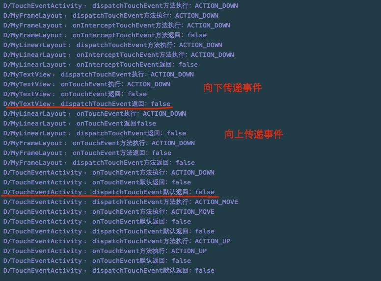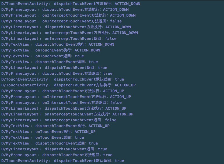 Log.d("TouchEventActivity", "dispatchTouchEvent默认返回:"+retVal);